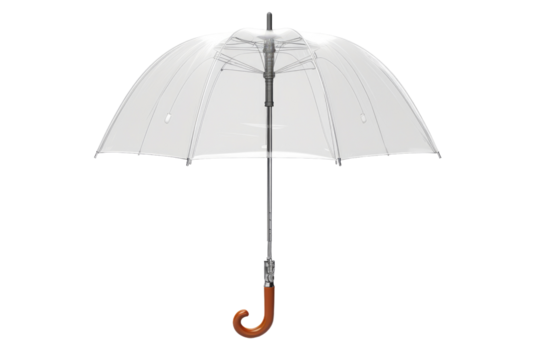 Elegant Rainy Day Companion: Clear Umbrella With Wooden Handle. On White or PNG Transparent Background.