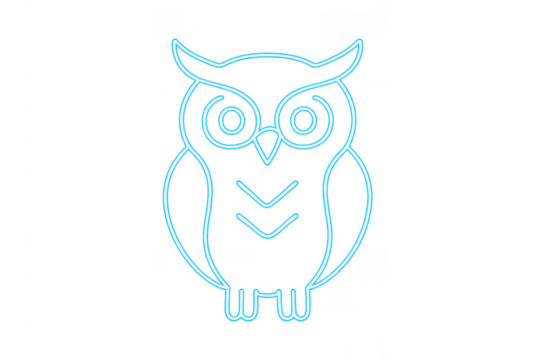 Owl neon light glowing outline transparent background