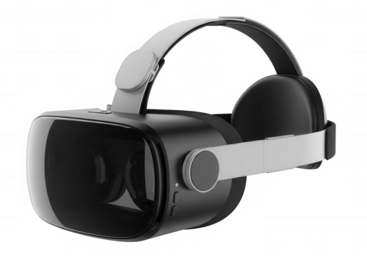 Sleek white and black vr headset on transparent background