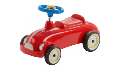 Red toy car with blue steering wheel red car white wheels isolated on a transparent background