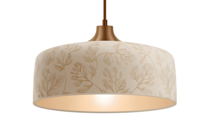 a simple hanging lamp, in a light beige color with a leaf pattern, on a transparent background, in the style of a png sticker.