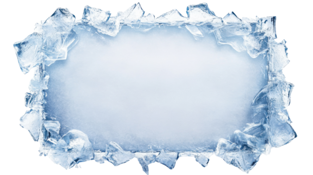 Driftwood, seashells, pebbles, and coral creating a frame on transparent background