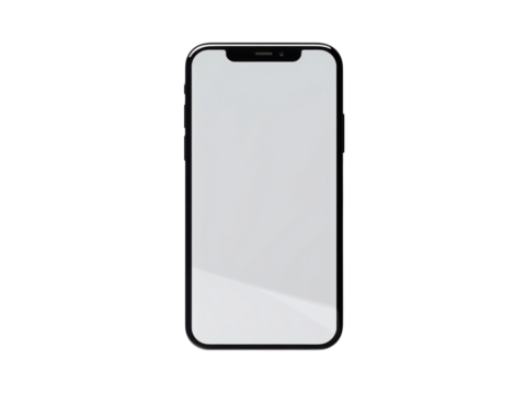 Smartphone mockup with blank white screen on black background showing reflection and rounded corners, Isolated On Transparent Background