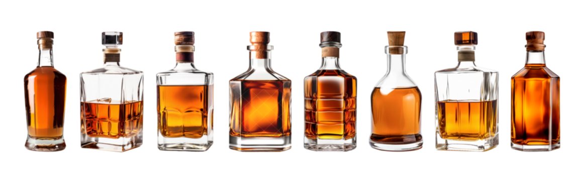 Three wine bottles with blank white labels on transparent background, concept for wine label design, beverage branding, and product packaging
