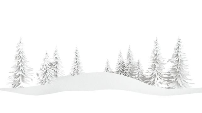 Tranquil winter landscape with snow-covered fir trees on transparent background