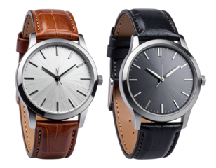 Elegant Men’s Leather Strap Watch Collection in Timeless Designs isolated on transparent background