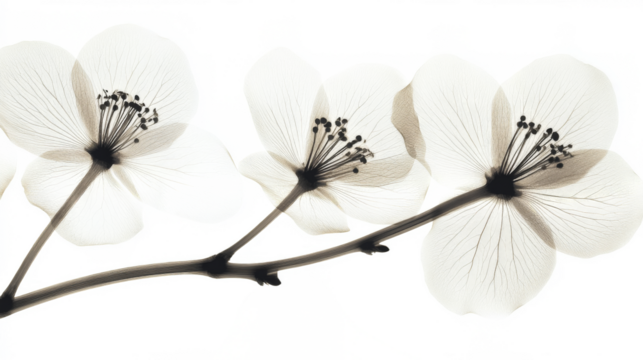 Xray transparent isolated branch PNG. Floral  leaves and stem. Vintage watercolor design for wedding cards, invitations. Spring or summer close-up photo. Elegant minimalist radiography.