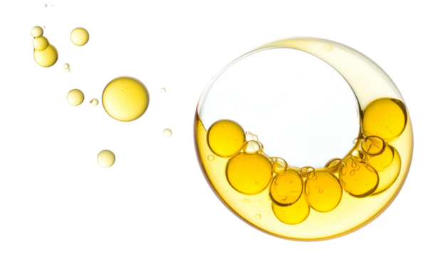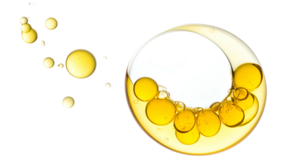 Close-up of yellow bubbles floating around a white circle, with a black background