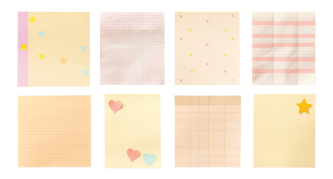 Photograph of Four Small Square Sticky Notes in 2x2 Grid Layout – Isolated on Transparent Background