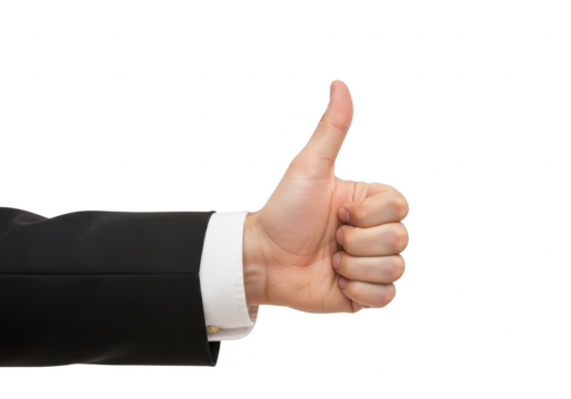 Mans hand giving a thumbs up gesture isolated on transparent background