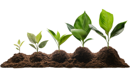 Group of various green seedlings, young plants for transplanting isolated on transparent background PNG (युवा पौधों का समूह)