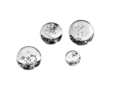 Glass spheres with trapped air, bubbles on a black plane