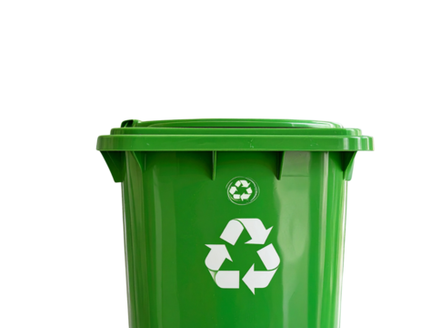 Minimal Flat Recycling Bin Icon with Green Arrows, Transparent Background