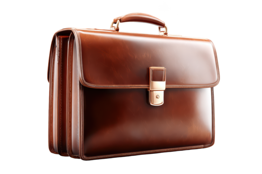 Isolated brown leather briefcase with golden closure, modern elegant accessory for business