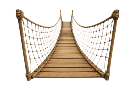 Adventure Rope Bridge Featuring Rustic Timber Steps and Railed Ropes Isolated on a Transparent Background