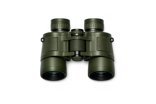 Military style green binoculars for exploration and adventure themes