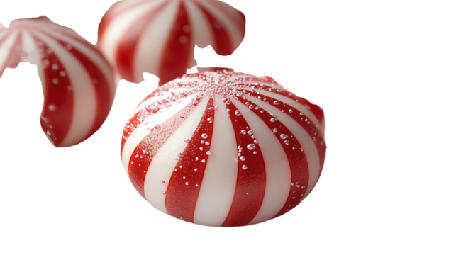 Sweet Symphony of Candy: A close-up studio shot showcases a selection of vibrant red and white striped candies.