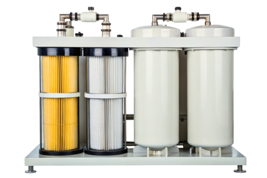 Industrial wastewater treatment and sludge dewatering system isolated on a transparent background