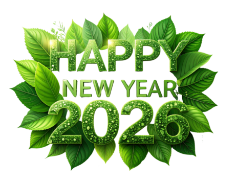 Eco Green Leaf “Happy New Year 2026” Organic Logo Design