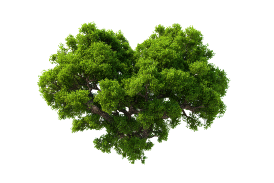 Lush green heart shaped tree canopy against black background leaves, Isolated On Transparent Background, Png Cut Out