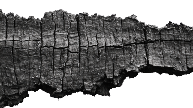 Natural tree trunk with intricate texture and exposed roots isolated on white background showcasing organic beauty and details of wood grain