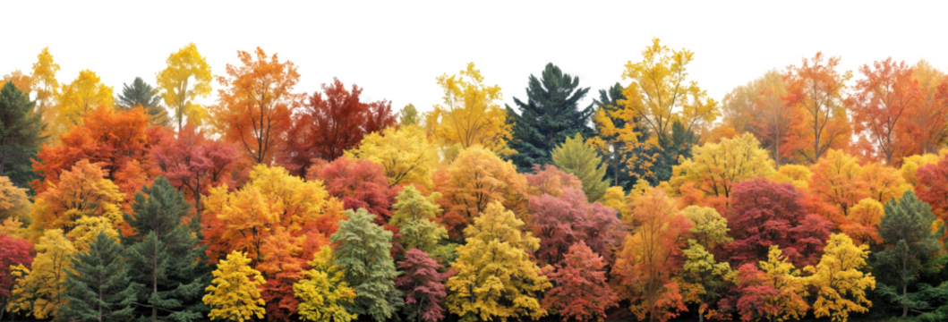 Vibrant Autumn Forest with Colorful Foliage on Transparent Background, Ideal for Seasonal and Nature-themed Projects
