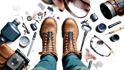 Hiking Gear and Camping Equipment Collection,PNG set collection, isolated on transparent background