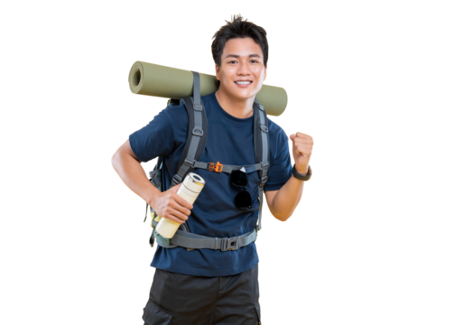 Young man with backpack isolated on transparent background