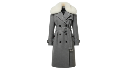 Modern Tailored Trench Coat with Buttons Isolated PNG.