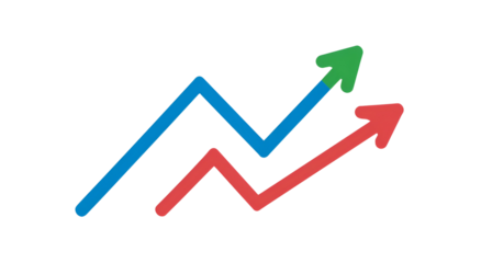 Green upward pointing arrows and a wavy line against a black background, suggesting growth