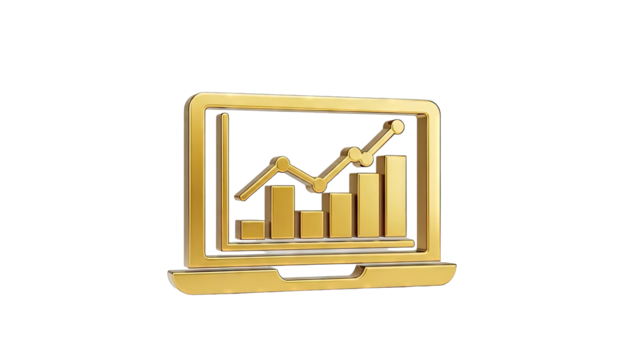 3d icon of isometric laptop displaying financial charts and graph, representing data analysis