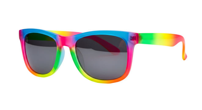 Colorful rainbow sunglasses isolated on transparent background fashionable and trendy eyewear for summer, party, or pride celebration