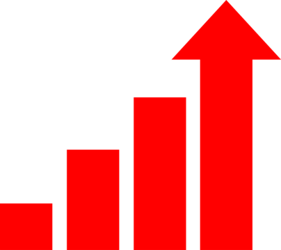 A 3D rendered red bar chart with an upward trending arrow against a black background