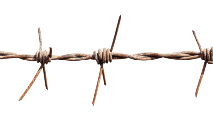 Rusty barbed wire creating a boundary on transparent background