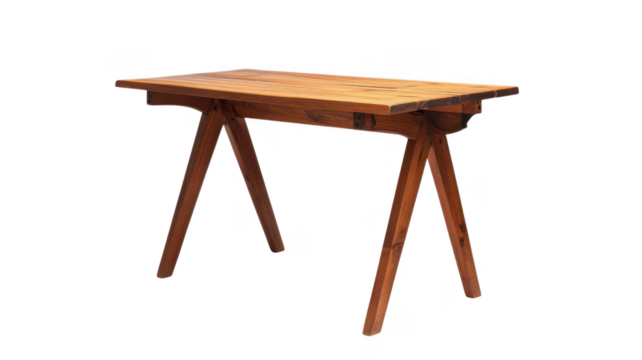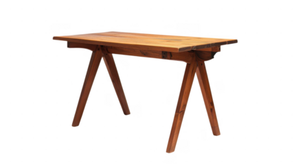 Photo of wooden trestle table with simple modern design isolated on white isolated on transparent background