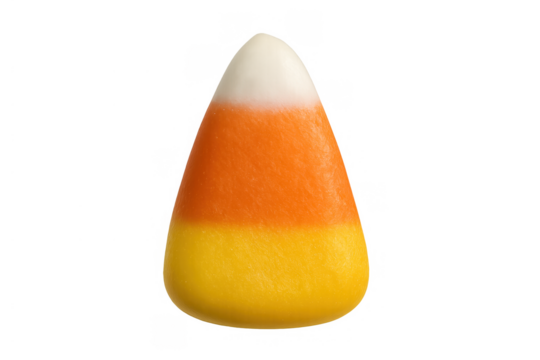 Candy corn depicting a classic sweet halloween treat in orange, yellow, and white colors with transparent background