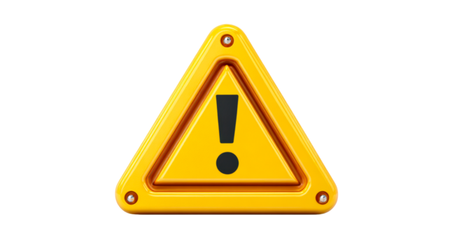 Yellow Warning Triangle with Exclamation Mark and Screws, cut out transparent