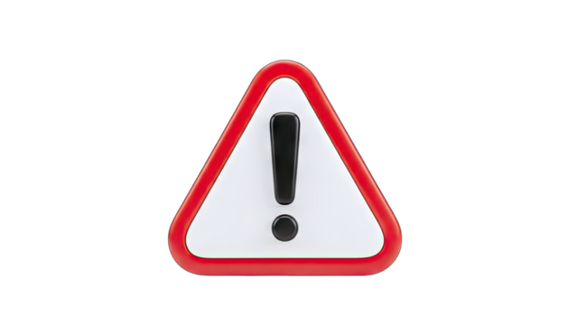 3d cartoon, red triangle warning sign with exclamation mark icon on a transparent background,v.png