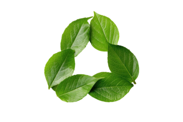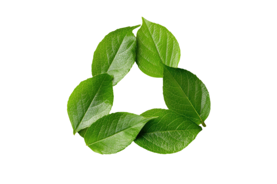 Three leaves in a triangular arrangement against a black backdrop, symbol of nature's recycling