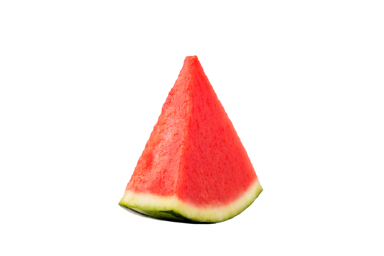A triangular slice of refreshing watermelon with a heart shape carved into its juicy red flesh isolated on transparent background