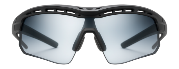 Focused athlete adjusting goggles, transparent background