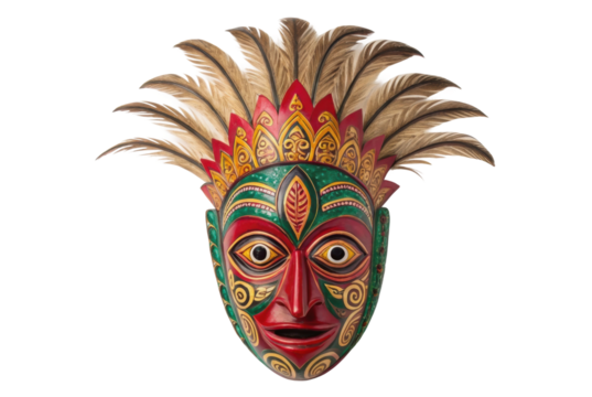 PNG Colorful traditional tribal mask with intricate patterns and feathers