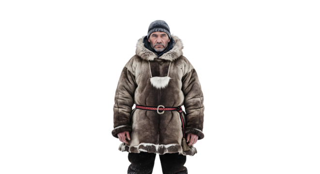 Indigenous african tribal leader wearing traditional headdress posing on transparent background