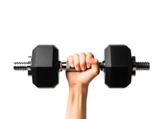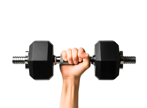 Strong arm lifting heavy dumbbell against black background fitness concept