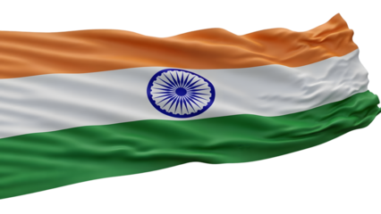 Indian Flag: A detailed view of the Indian flag waving, displaying its vibrant tricolor design, the Ashoka Chakra symbol, and textures.