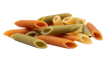 A cluster of classic tricolored candy corn, featuring white, orange, and yellow segments, isolated against a solid dark transparent background. background removed