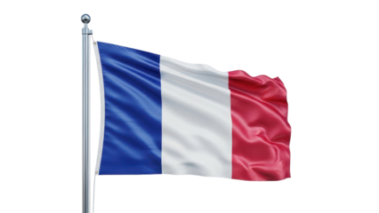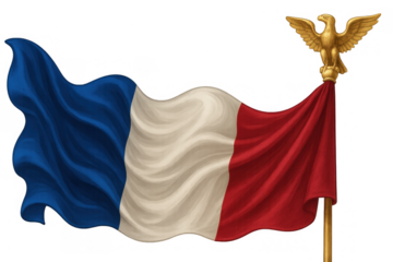 A vibrant tricolor flag waving in the wind with flowing fabric