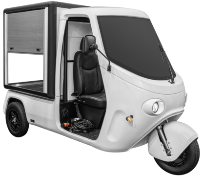 Electric cargo tricycle for delivery services isolated PNG with Transparent Background