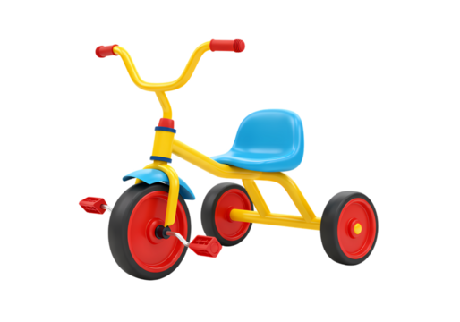Yellow and Blue Childs Tricycle Classic Toy for Kids isolated on transparent background