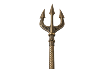 Bronze trident isolated PNG on transparent background, ancient mythology weapon for fantasy and historical design